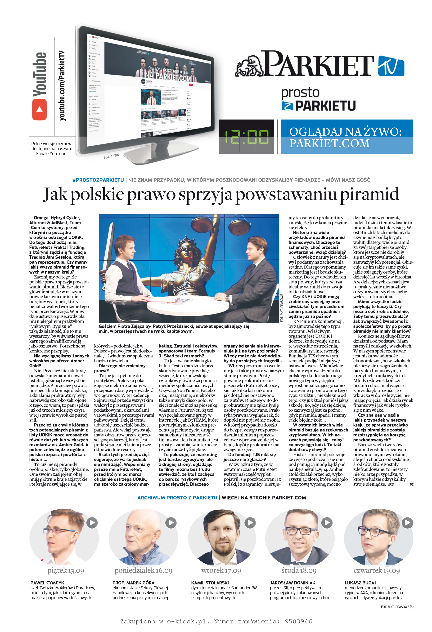 Gościem  ubiegłotygodniowego programu „Parkiet TV” poświęconego problemowi piramid finansowych był mec. Patryk Przeździecki.